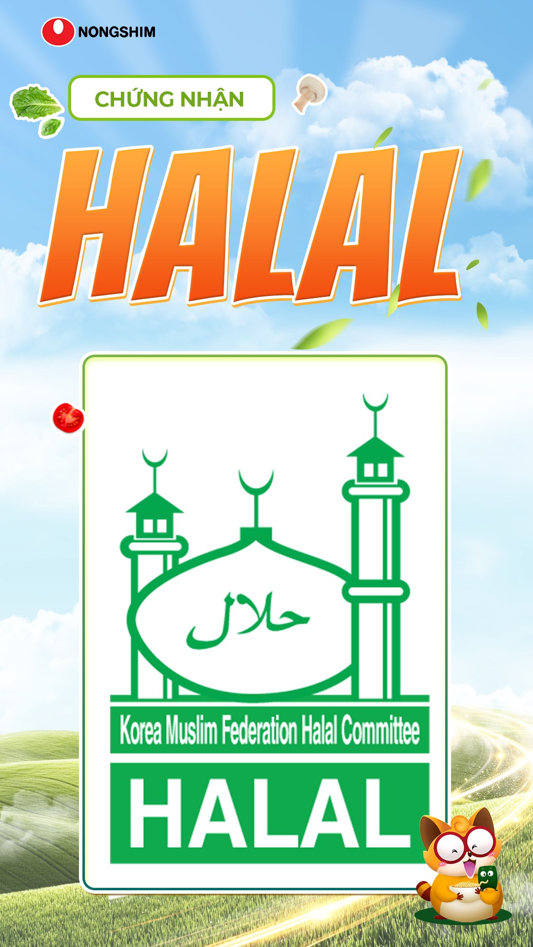 Các dòng mì Nongshim đã được Korea Muslim Federation Halal Committee (Ủy ban HALAL Liên đoàn Hồi giáo Hàn Quốc) chứng nhận HALAL. Đây là minh chứng rõ ràng cho quy trình sản xuất khắt khe, chuẩn mực quốc tế và sự nghiêm túc của Nongshim trong việc chinh phục thị trường toàn cầu.