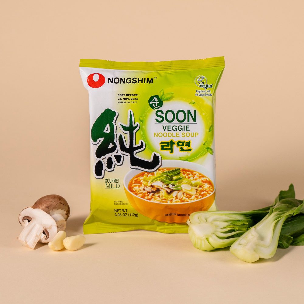 Sản phẩm nổi tiếng đến từ thương hiệu Nongshim – “ông lớn” của ngành mì Hàn Quốc, được xuất khẩu trên toàn thế giới và được hàng triệu người ăn chay tin dùng.