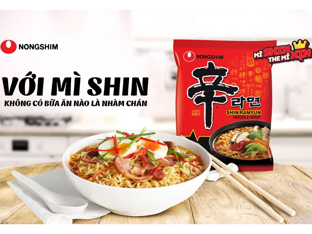 Hiện nay mì cay Shin cũng đang rất được ưa chuộng tại Việt Nam. MÌ Shin ramyun với vắt mì tròn, sợi mì dai ngon Với sợi mì mềm dai kết hợp với nước soup cay vị thịt bò, cùng nấm, cà rốt và những quả ớt ngon nhất thế giới. Mì cay Hàn Quốc Shin Ramyun đã tạo ra công thức hoàn hảo có thể làm hài lòng bất kỳ khẩu vị ăn cay nào.